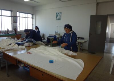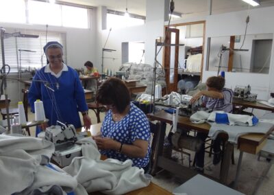 يهتمّ هذا المشغل بخياطة الالبسة المدرسية، بالاضافة الى: