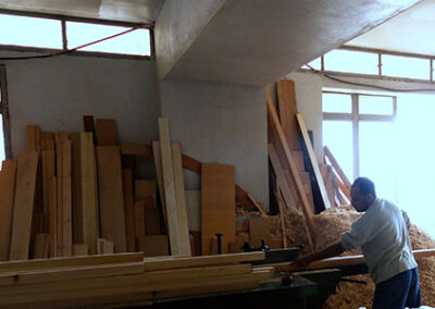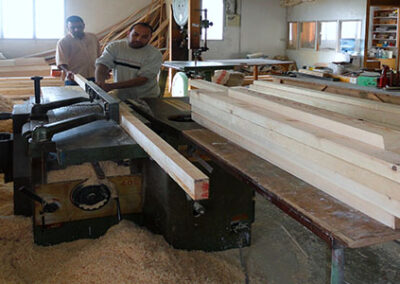 لتصنيع كافة المستلزمات الخشبيّة: أبواب، طاولات، كراسي، خزانات… كلّ الجمعيّة. كما ويهتمّ مشغل النجارة بصيانة كلّ صفوف المدرسة في دير بيت حبّاق.